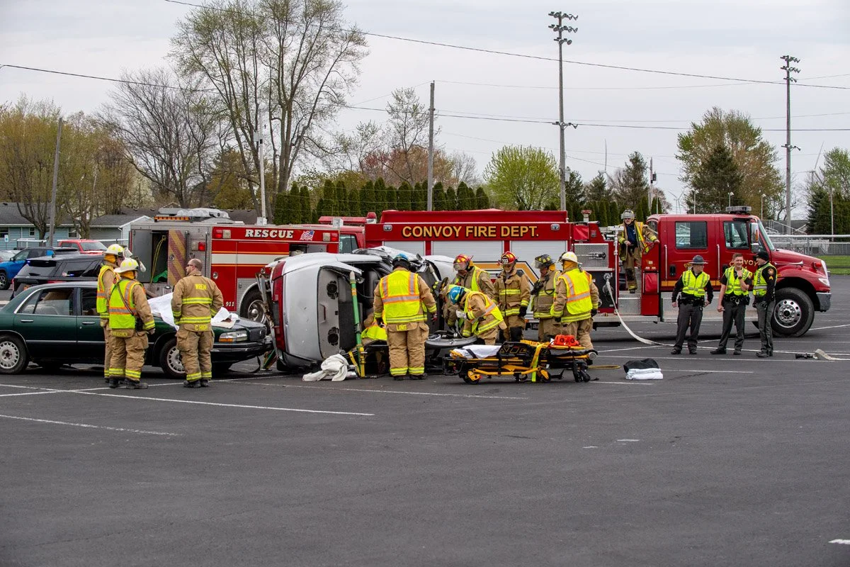 A crash simulation involving the Convoy, Wren,and Willshire Fire Departments along with the Van Wert Sheriffs Dept, Ohio State Patrole, and Crestview Highschool 4/28/2022